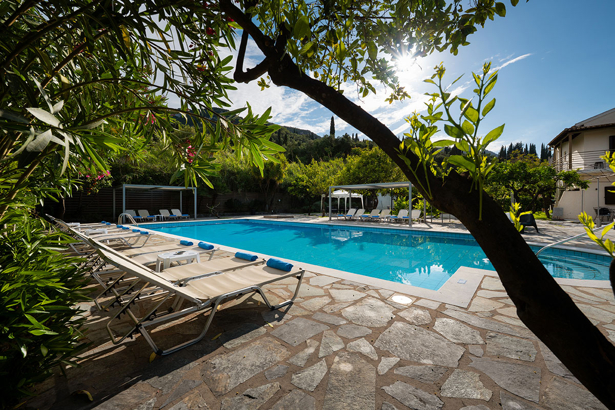 Tucked away in a lush orange grove just steps from the beach, Orange Grove Suites offers a unique blend of comfort, privacy, and authentic Corfiot charm. Located in the heart of Benitses village—within walking distance of traditional tavernas, seaside cafés, and local shops—our property is a tranquil hideaway designed for rest and relaxation.